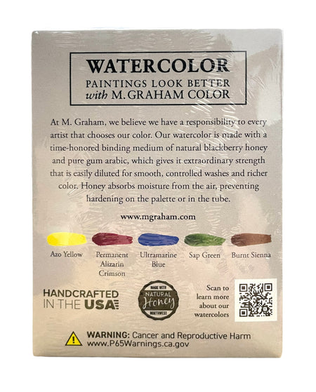 M. Graham watercolors are made with Northwest blackberry honey, recalling the practice of early artists who drew from nature for their materials as well as their subjects. This traditional base creates willing watercolors ready for your brush and yields even, fluid washes.